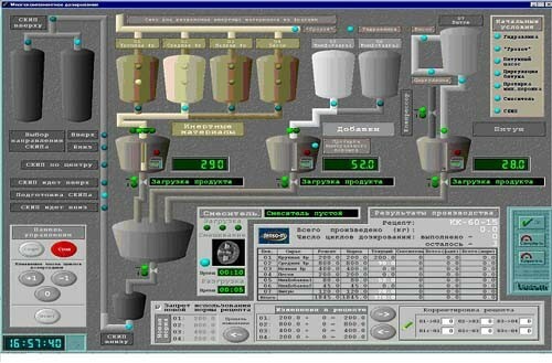 • Оперативное отображение информации о технологическом процессе и контроль за ходом технологического процесса, состоянием оборудования, дозированием и смешиванием;