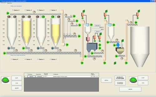Информация о ходе технологического процесса выводится оператору в графическом и текстовом виде.