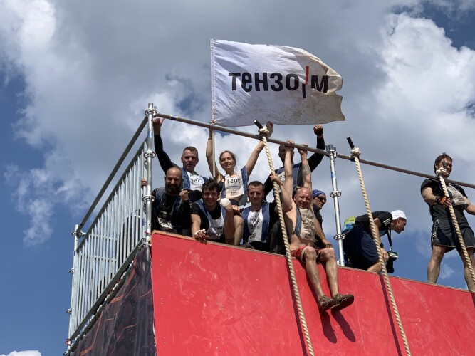 Команда «Тензо-М» – одна из немногих, которая несла в руках флаг компании в течение всего забега и подняла его на вершине «Эвереста» – 6-ти метровой рампы – финального препятствия, без которого не обходится ни одна гонка. Обессилившие после прохождения всех испытаний участники должны взобраться на его вершину по наклонной платформе. Командный дух и взаимовыручка помогли членам нашей команды благополучно добраться до самого верха.