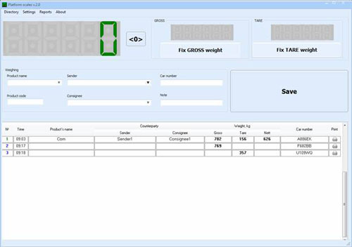 Несколько копий ПО могут работать с единой базой данных размещенной на сервере. В базу данных вносятся весовая информация, информация о контрагентах, а также тип взвешивания – приход или расход. Это позволяет получить наиболее полную картину о движении грузов. Вся вносимая в базу данных информация авторизована, и в любой момент времени можно отследить, какой из операторов создавал или модифицировал взвешивание.