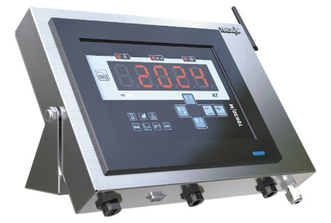 Промышленный компьютер с сенсорным экраном в корпусе из нержавеющей стали. Терминал оснащен специализированным ПО для связи с весовым обрудованием