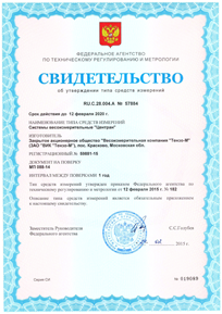 Система «ЦЕНТРАН» внесена в Государственный реестр средств измерений под № 28108-09.