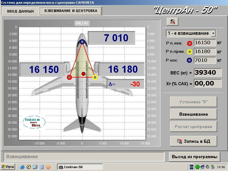 Весоизмерительная система «Центран» предназначена для измерения в статическом режиме нагрузки в точках опор различных грузов, в том числе летательных аппаратов, а так же определения их полной массы, положения центра массы и центровки.